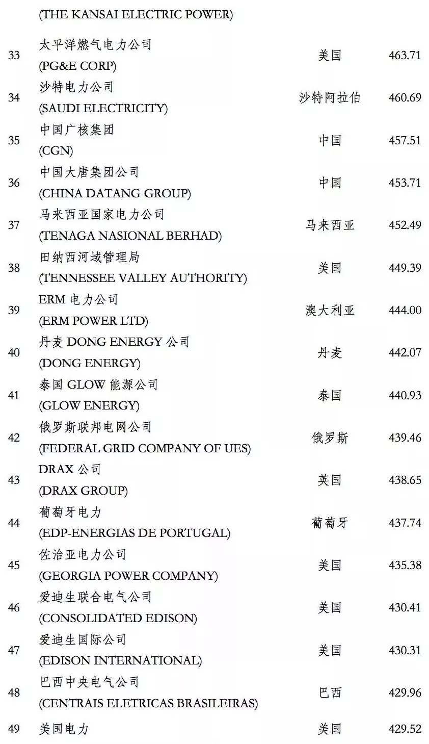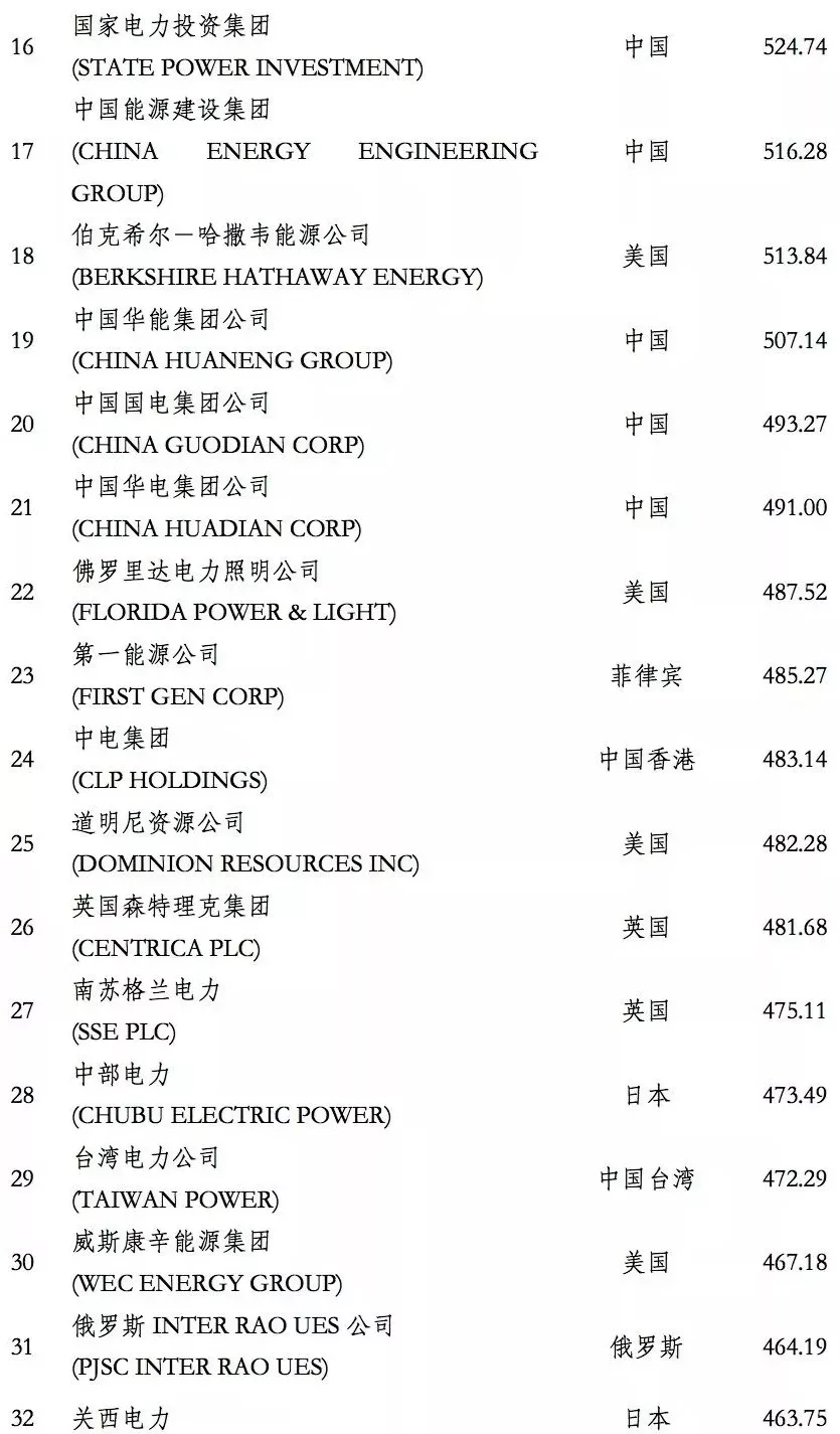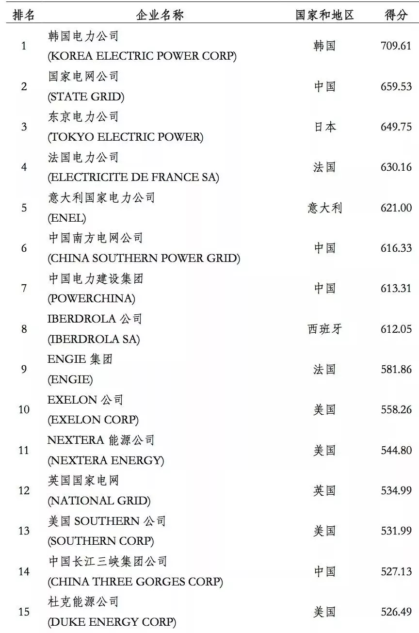 電力企業(yè)全球競(jìng)爭(zhēng)力排行榜100強(qiáng)